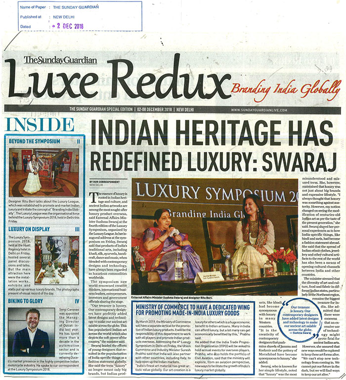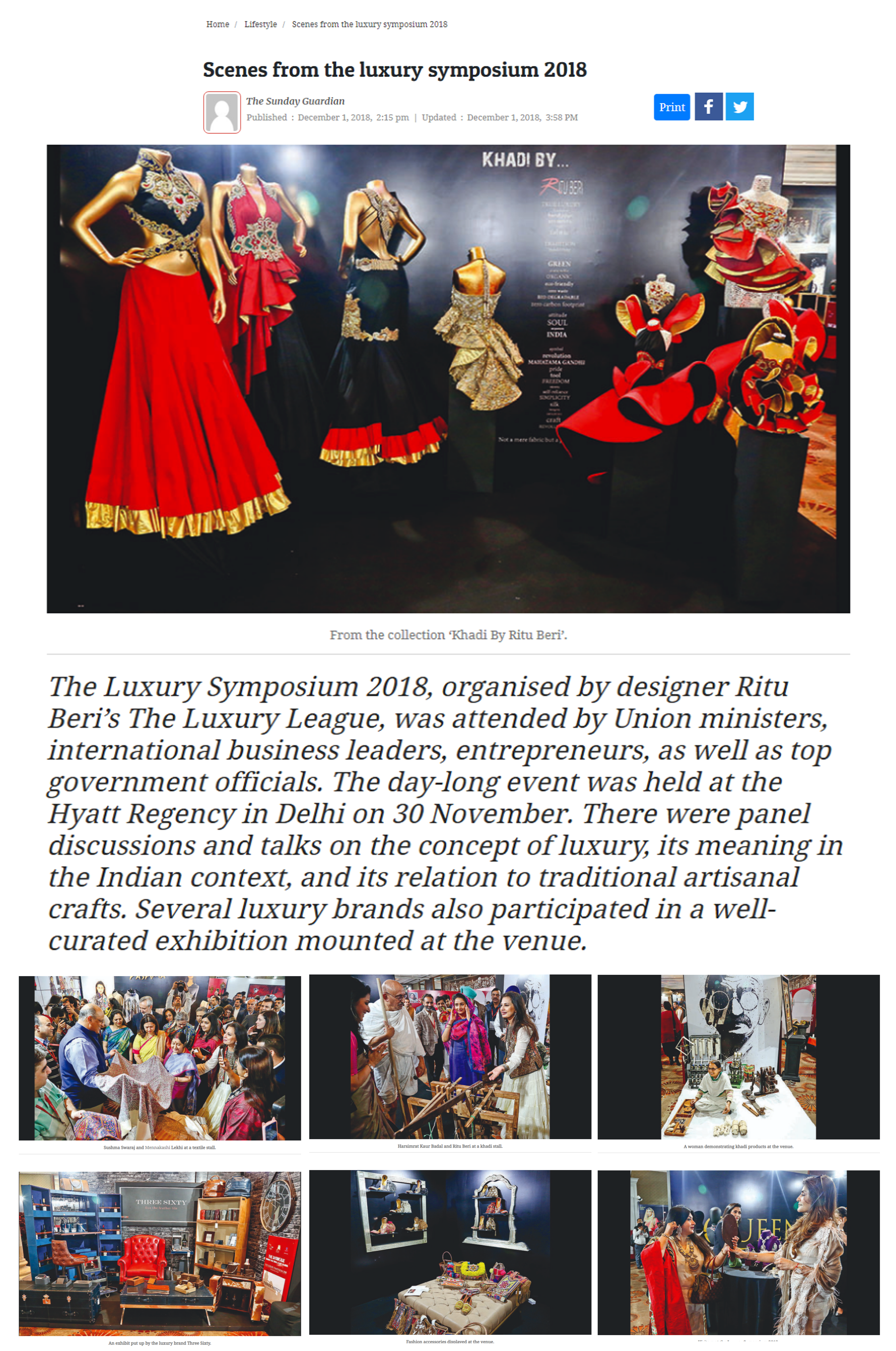This year's symposium showed deep thinking behind each sessions and the carefully selected topics and panelists. The Key notes by the policy makers Hon’ble Ministers Smt Sushma Swaraj, Shri Suresh Prabhu, Shri Vijay Goel, Shri KJ Alphons, Shri Dharmendra Pradhan range of political personalities and Bibek Debroy were meaningful. I found myself glued to the seat overwhelmed by Ritu ji’s single minded determination and soft power of Transformation of Luxury to become an inclusive concept of Heritage, culture, affordable luxury, quality and excellence. Smt. Sushma Swaraj s assertion of her own thinking being charged by Ritu Beri. And Suresh Prabhus announcement of a Trade council and the future looks bright. I am a great believer of What Ritu Beri represents and stands for. Her passion, commitment, determination, intellectual prowess and creativity in this year's Luxury Symposium proved all that and more and laid a great foundation for leapfrogging of the concept to another level. Kudos, congratulations and much appreciation. She has done for India's Soft power and global branding what FDCI could not do since inception. Remaining on Page 3 is not the objective of Indian Fashion what RituBeri did is what is the real strategy forward Govt should set up the India Fashion and Luxury Council and make RituBeri the Chairperson. India will benefit globally..