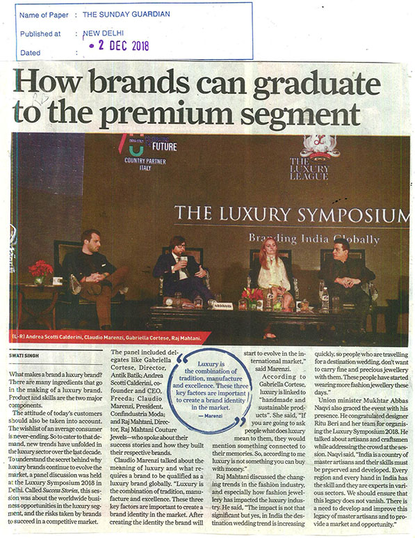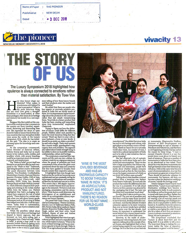 Thank you for associating me to your event. It was very well organized and the content shared by everyone was insightful. I sincerely hope that The Luxury Symposium 2018 will contribute to putting India Luxury brands back on the world map. France and Italy have successfully developed and marketed luxury